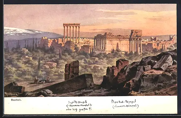 Künstler-AK Friedrich Perlberg: Baalbek, Totalansicht der Tempelanlagen