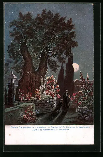 Künstler-AK Friedrich Perlberg: Jerusalem, Garten Gethsemane im Mondlicht