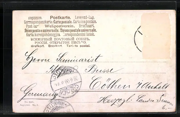 alte Ansichtskarte, gelaufen 1906, Briefmarke entfernt, rückseitig Oberflächenschaden, guter Zustand