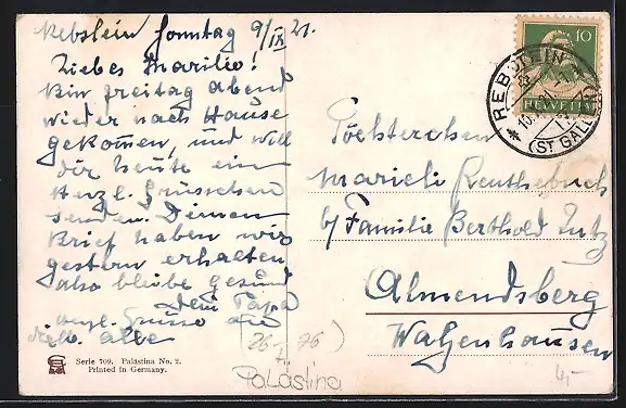 alte Ansichtskarte, gelaufen 1921, guter Zustand