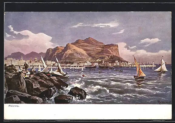 Künstler-AK Friedrich Perlberg: Palermo, Segelschiffe vor der Stadt