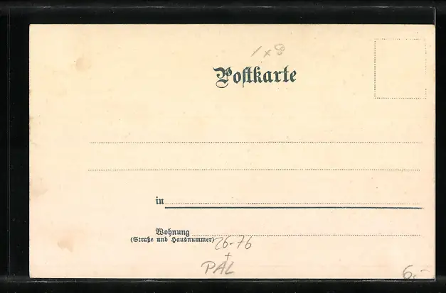 Personenbezogene Daten auf der Rückseite der Karte wurden durch blauen Textmarker unkenntlich gemacht. Die blauen Stellen sind auf die Vorderseite durchgeweicht und wirken sich negativ auf das Postkartenfoto aus