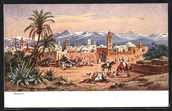 Künstler-AK Friedrich Perlberg: Stadtansicht mit Gebirgspanorama in Marokka