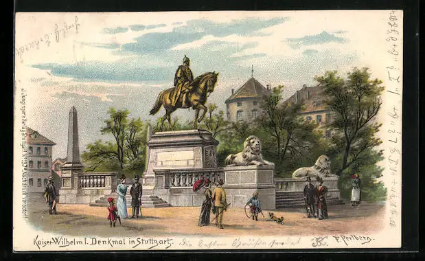 Künstler-AK Friedrich Perlberg: Stuttgart, Kaiser-Wilhelm I. Denkmal