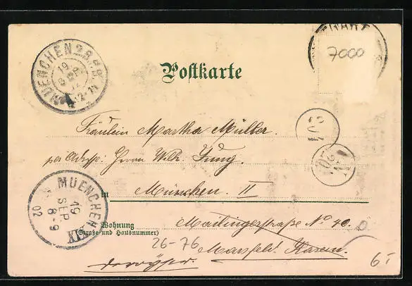 alte Ansichtskarte, gelaufen 1902, Briefmarke entfernt, rückseitig Oberflächenschaden, guter Zustand