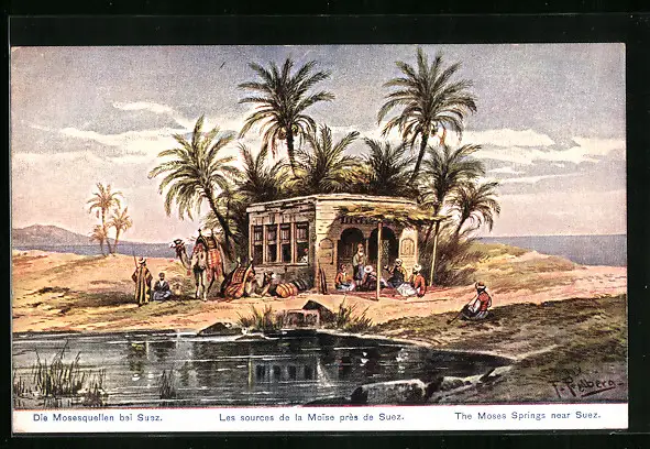 Künstler-AK Friedrich Perlberg: Suez, Mosesquellen