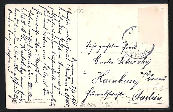 gelaufen 1911, Briefmarke entfernt, rückseitig Oberflächenschaden, guter Zustand