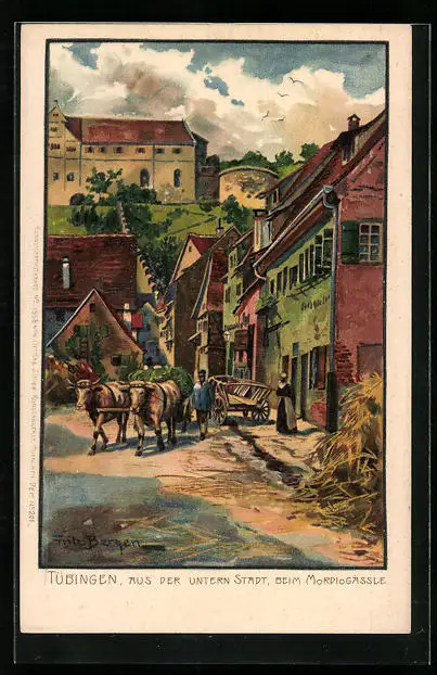 Künstler-AK Fritz Bergen: Tübingen, Partie im Mordiogässle in der untern Stadt