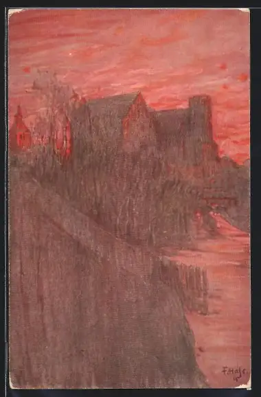 Künstler-AK Fritz Hass: Allenstein, Altes Schloss an der Alle
