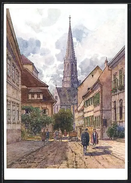 Künstler-AK Fritz Lach: Bad Hall, Kirchengasse