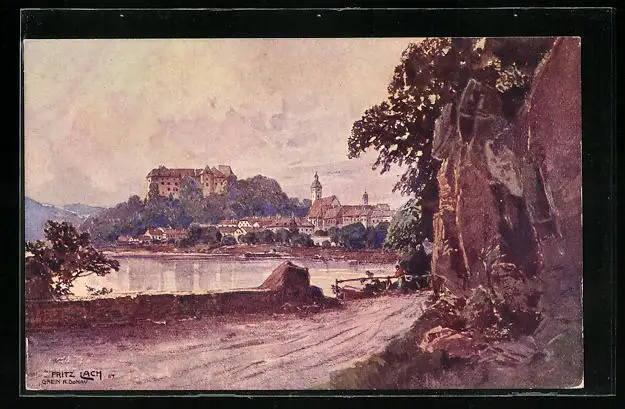 Künstler-AK Fritz Lach: Grein a. Donau, Uferpartie