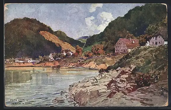 Künstler-AK Fritz Lach: Obermühl a. Donau, Gesamtansicht