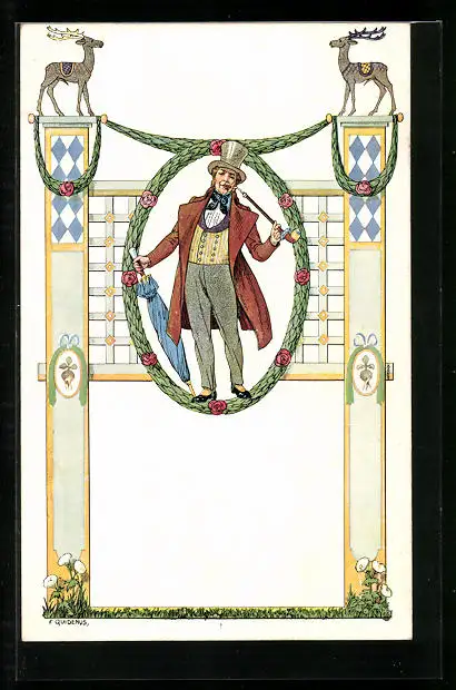 Künstler-AK Fritz Quidenus: Elegant gekleideter Herr mit Pfeife