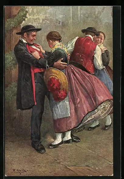 Künstler-AK Fritz Reiss: Schwarzwälder Bauerntanz