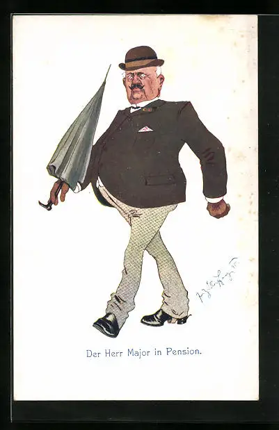 Künstler-AK Fritz Schönpflug: Der Herr Major in Pension