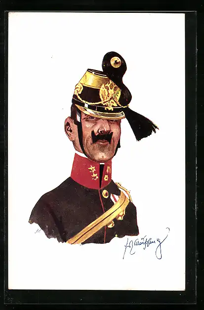 Künstler-AK Fritz Schönpflug: Soldat in Uniform mit Federhut Mütze