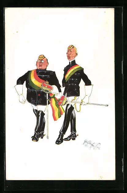 Künstler-AK Fritz Schönpflug: Zwei Soldaten in Uniform mit Degen