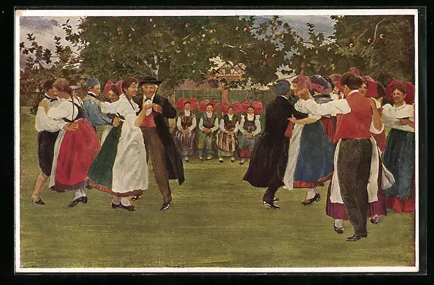 Künstler-AK Fröhliche Elsässer beim Tanz auf der Wiese
