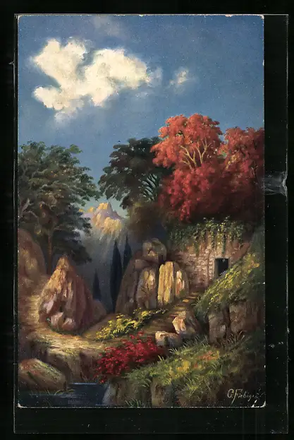 Künstler-AK G. Fiebiger: Eingang zu einer Ruine
