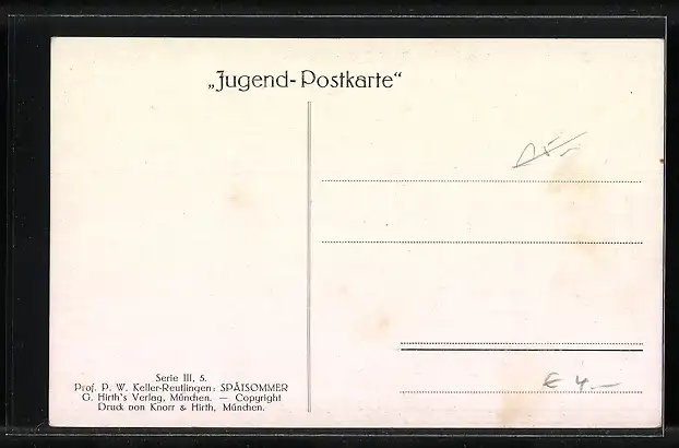 Künstler-AK G.Hirth`s Verlag, Serie III / 5, Spätsommer, Mädchen mit Korb auf einer Wiese