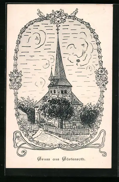 Künstler-AK Gärtenroth, Darstellung der Kirche