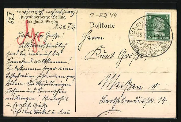 Künstler-AK Geising, Jugendherberge mit Strasse