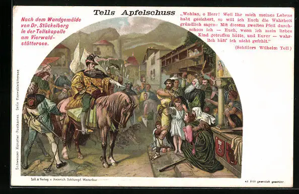 Künstler-AK Gemälde Tells Apfelschuss nach Stückelberg, Text