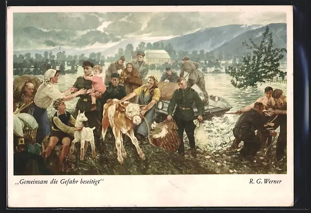 Künstler-AK Gemeinsan die Gefahr beseitigt!