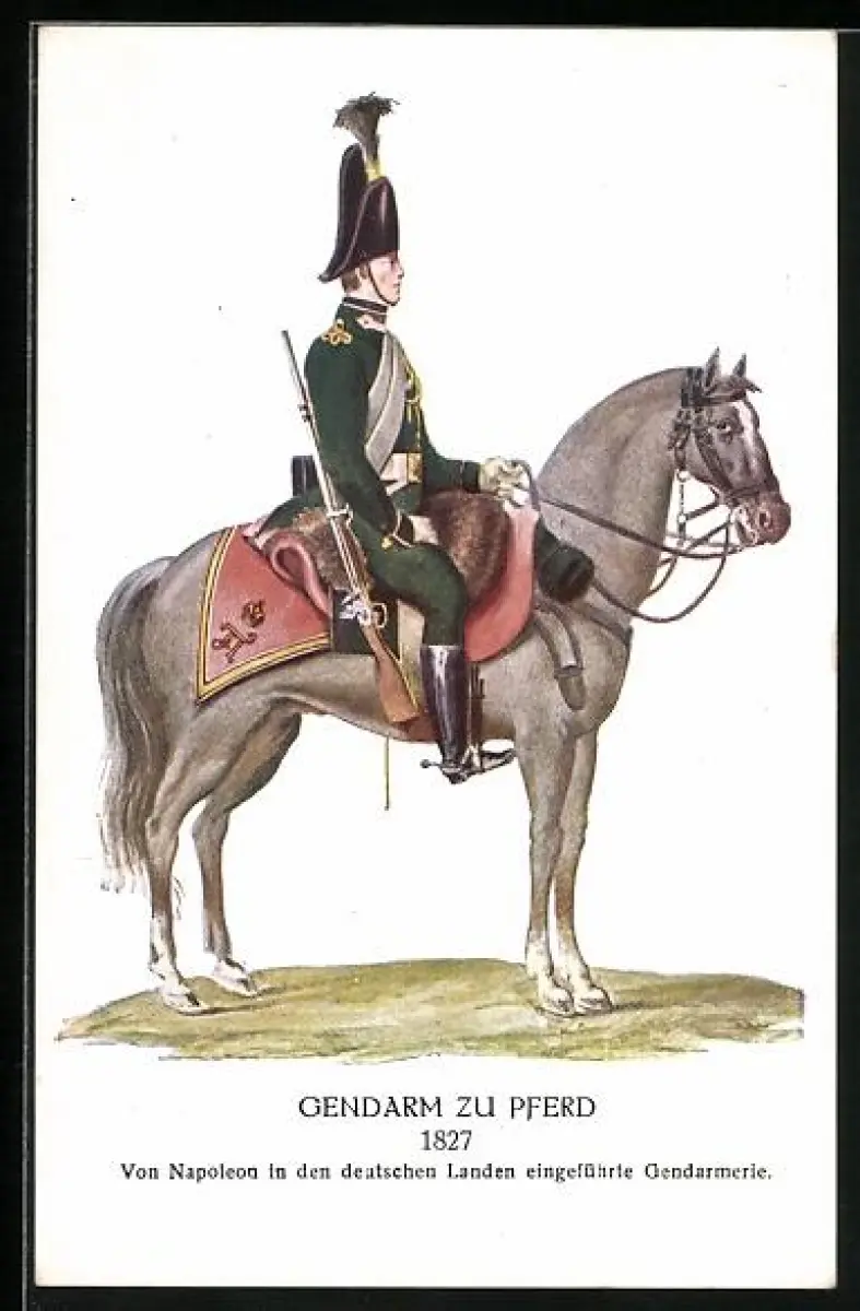 Künstler-AK Gendarm zu Pferd in Uniform 1827