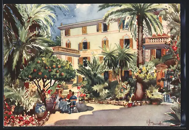 Künstler-AK Genova, Nervi, Albergo Pensione Bürgi