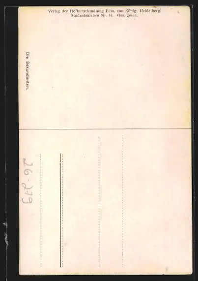 Personenbezogene Daten auf der Rückseite der Karte wurden durch blauen Textmarker unkenntlich gemacht. Die blauen Stellen sind auf die Vorderseite durchgeweicht und wirken sich negativ auf das Postkartenfoto aus