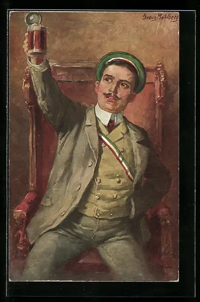 Künstler-AK Georg Mühlberg: Student hebt ein Bierglas