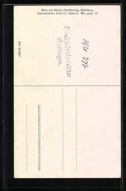 Personenbezogene Daten auf der Rückseite der Karte wurden durch blauen Textmarker unkenntlich gemacht. Die blauen Stellen sind auf die Vorderseite durchgeweicht und wirken sich negativ auf das Postkartenfoto aus