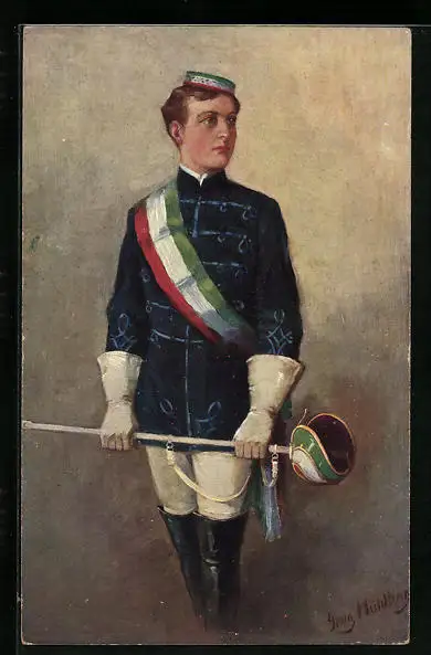 Künstler-AK Georg Mühlberg: Student in Wichs mit Degen