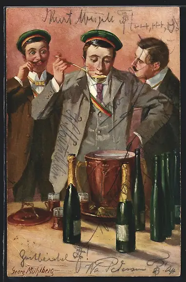 Künstler-AK Georg Mühlberg: Studentenleben, Probieren der Maibowle
