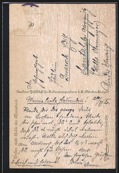 alte Ansichtskarte, gelaufen, Briefmarke entfernt, rückseitig Oberflächenschaden, guter Zustand