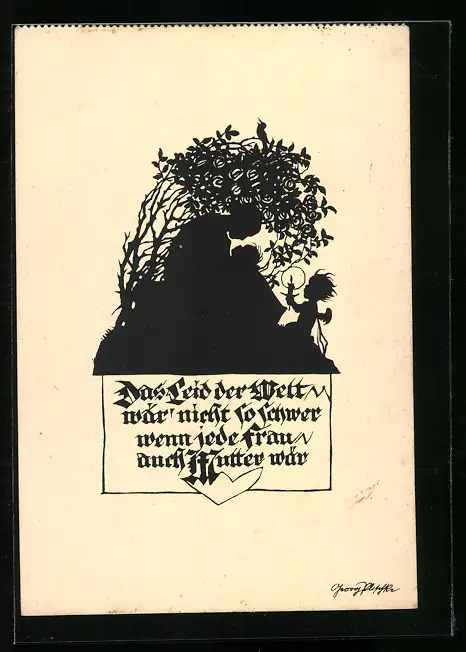 Künstler-AK Georg Plischke: Mutter mit ihrem Kind, Engel mit Kerze, Schattenbild