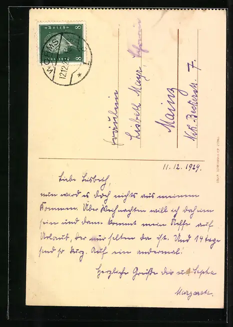 alte Ansichtskarte, gelaufen 1929, guter Zustand