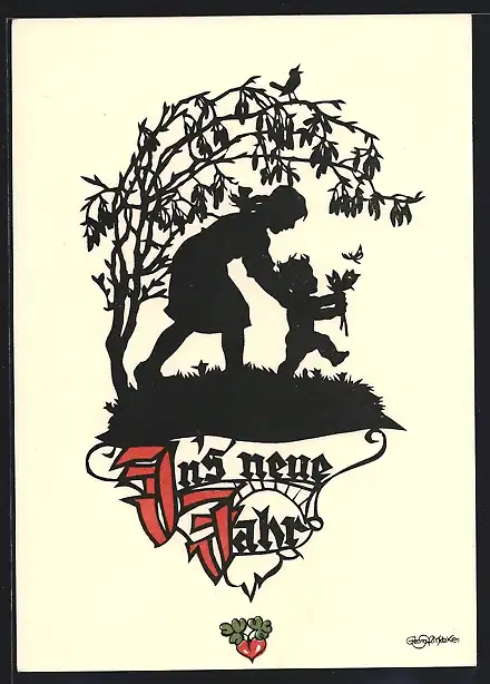 Künstler-AK Georg Plischke: Neujahr, Mutter mit Kind unter einem Strauch
