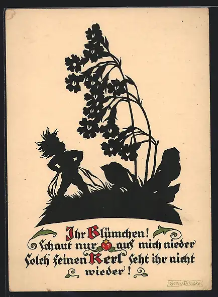 Künstler-AK Georg Plischke: Schattenbild, Kindlein vor Glockenblumen