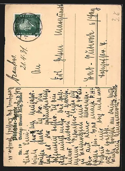 gelaufen 1931, Eckknicke li. oben u. re. unten, guter Zustand