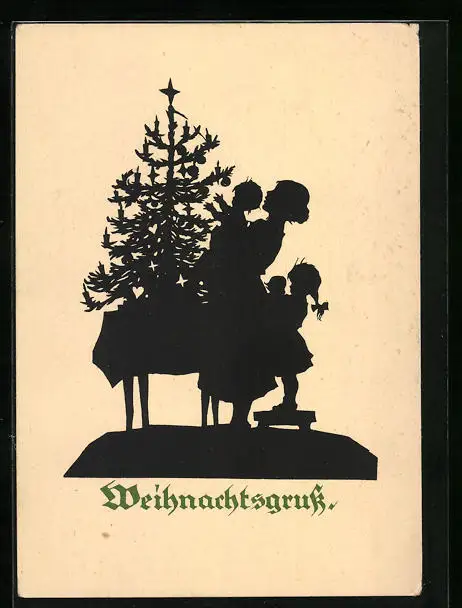 Künstler-AK Georg Plischke: Weihnachtsgruss, Mutter mit den Kindern am Christbaum