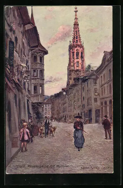 Künstler-AK Georges Stein: Bern, Kesslergasse mit Münster