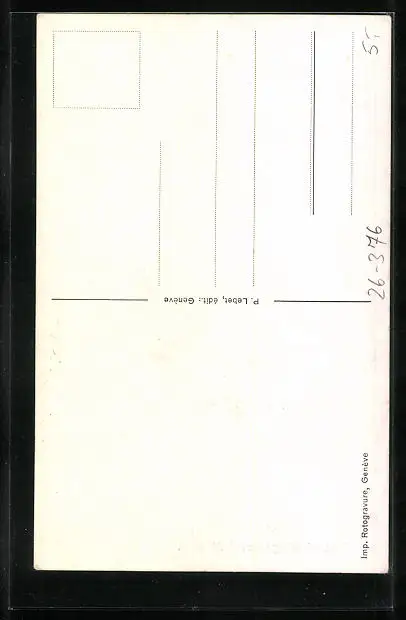 Personenbezogene Daten auf der Rückseite der Karte wurden durch blauen Textmarker unkenntlich gemacht. Die blauen Stellen sind auf die Vorderseite durchgeweicht und wirken sich negativ auf das Postkartenfoto aus