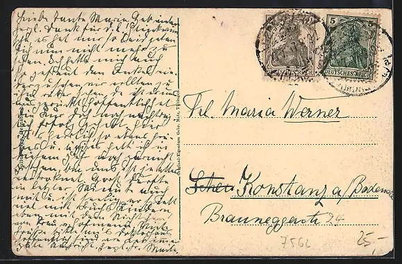 gelaufen 1917, Eckknick re. unten, Stecknadelloch oben mittig, minimaler Eckschaden li. unten, guter Zustand