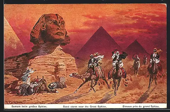 Künstler-AK Gizeh, Samum beim grossen Sphinx