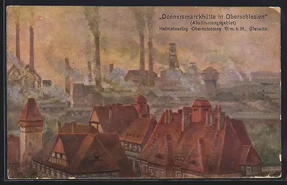 Künstler-AK Gleiwitz, Donnersmarckhütte, Ansicht aus der Vogelschau