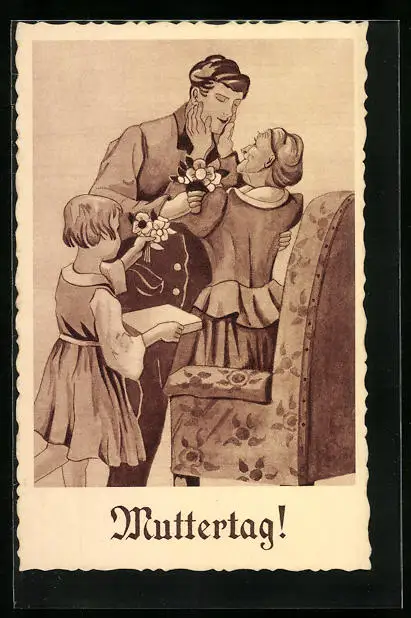 Künstler-AK Glückwünsche zum Muttertag, Grossmutter wird beschenkt