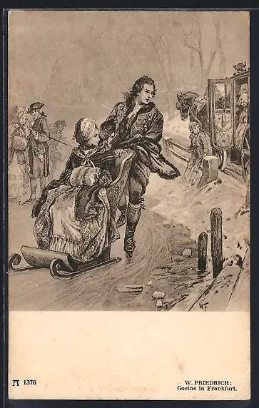 Künstler-AK Goethe beim Schlittschuhlaufen in Frankfurt