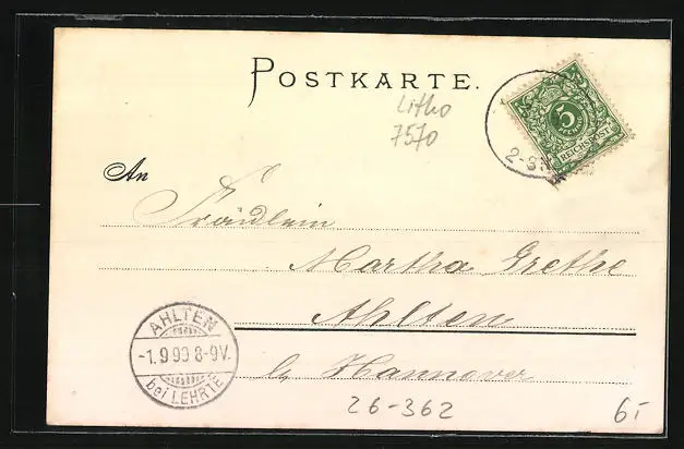 alte Ansichtskarte, gelaufen 1899, guter Zustand